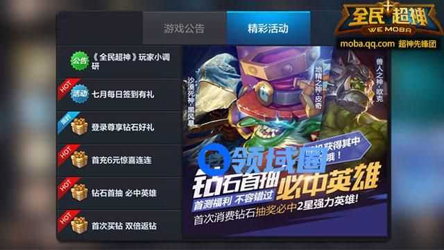 D板块:点击进入后可看到游戏公告和精彩活动,想要各种福利来这里就对了。