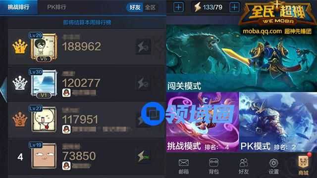 F板块:挑战模式,同样是副本关卡,只不过这里的副本难度跨度更大。另外好友闯关的成绩也会在这里进行你追我赶。