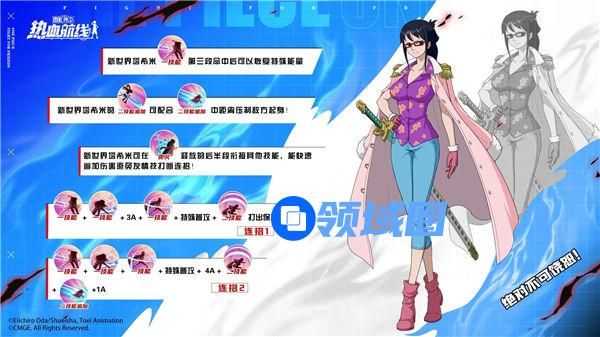她共拥有五段普攻效果,且能量满额时其普攻附带武装色效果,对敌人造成更高伤害。其1技能第三段还拥有短暂的无敌效果,可用于突击压制敌方。整体上看,她在使用技能时能快速向前冲刺,还能滑行斩击以及跃起从空中向下攻击,攻击角度灵活多变,令敌人防不胜防。
