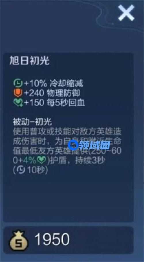 以上就是王者荣耀旭日初光装备详情攻略的全部内容,更多精彩内容攻略请持续关注领域圈,小编将持续更新更多相关攻略。