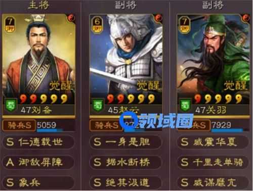 这个战法,能够给关羽稳定地施加洞察状态。这就使这队摇身一变:刘备+2洞察武将,有刘备的大奶在,2洞察武将带大控兼顾大输出,稳定且骚。