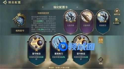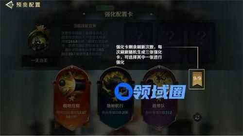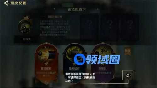 确定预兆技能后,需要选择三张技能强化卡强化。强化卡会按轮次刷新,每轮刷新的数量为3张,可选择其中一张强化卡用于强化选择的技能。