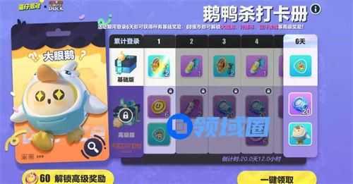 3、第三款皮肤【大眼鹅】需要购买鹅鸭杀打卡册,并且每日连续登录获取奖励,连续登录6天即可解锁这款皮肤了。