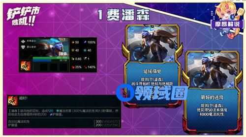 潘森技能是造成其魔抗百分比的魔法伤害,3星就是675%,搭配潘森专属符文最好的进攻一次技能伤害轻松达到1600+,而潘森60法力值,技能释放频繁,搭配3超英羁绊,输出强度非常高。