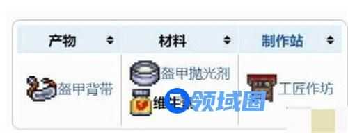 制作:一种盔甲抛光剂和一种维生素,可在工匠车间合成一个盔甲背带。