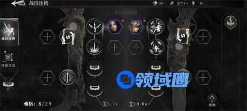 接下来根据指引将破盾者魂核与技能关联,提供属性加成和特色魂技。其中魂技分为主动和被动两种,主动魂技只有紫色及以上非素材魂核拥有,角色施放与该魂核关联的技能时会同时释放主动魂技。要注意每个主动魂技都有单独的冷却,在实际战斗中,非冷却中的技能如果与有主动魂技的魂核关联,其图标下方会有小点提示,其中绿点表示魂技已就绪,而橙色小点表示魂技还在冷却,使用关联技能不会触发相应魂技。