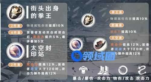 「毁灭」命途开拓者的遗器最优选择为【街头出身的拳王】四件套加【太空封印站】二件套,拳王套可以提升开拓者的物理属性伤害并通过叠层大幅提升攻击力,太空套则会直接提升开拓者的攻击力,当开拓者得到队友的速度增益时还会有额外攻击力增益,这两套遗器组合可以简单粗暴的提升开拓者的输出能力。