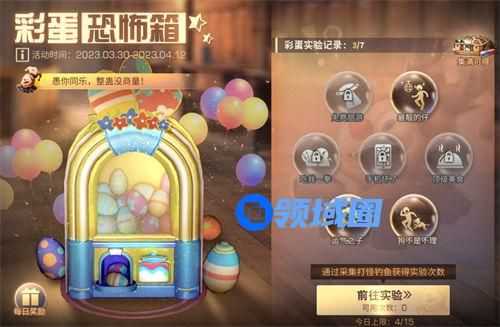 通过与彩蛋恐怖箱交互完成彩蛋实验,点亮所有彩蛋实验记录,即可获得惊喜奖励