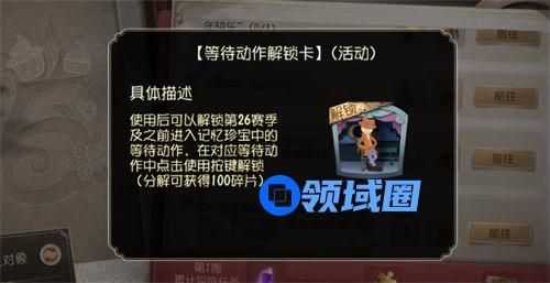 5、第二周的最终奖励是【等待动作解锁卡】。(使用后可以解锁第26赛季及之前进入以及珍宝中的等待动作)