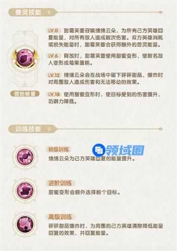 1、甜霜芙蕾提供的能量回复效果,能使英雄更频繁使用必杀技与能削减敌人能量的英雄搭配;