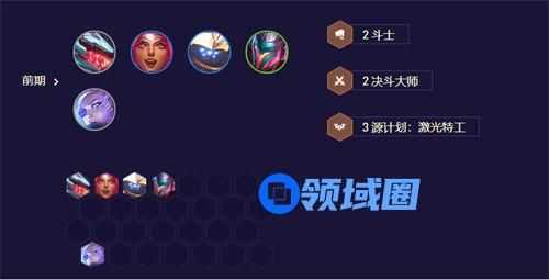 2-1升4,2-5升5,2斗2护卫3小天才3源计划3未来战士都可以过渡,机甲牌沿路留一下,等4阶段来盖伦可以开。