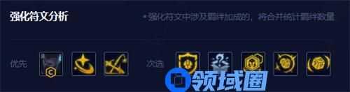 强化符文方面公理圆弧(加快技能释放频率)、万用瞄准镜(增加攻击距离,增加保命能力)、护卫心徽冕(更容易开6护卫,之后也可9人口搭配未来与黑客)、潘朵拉的装备(完美神装更容易)最优。