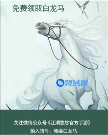 以上就是江湖悠悠白龙马领取方法攻略的全部内容,更多精彩内容攻略请持续关注领域圈,小编将持续更新更多相关攻略。