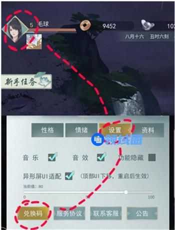 3、返回游戏界面,打开设置,找到兑换码图标。