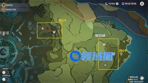 3、明冠峡下方能够刷取6个,然后是看到左边比较远的位置上还有2个。