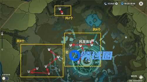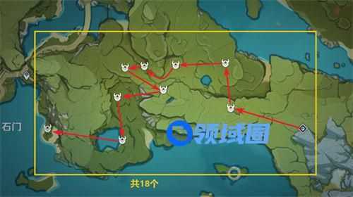 4、看到下图中的路线图将能够刷取18个丘丘人。