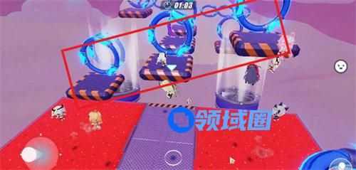 1、开局靠近右边蹦床,左边首轮圆环位置很高很难拿到分数,趁右边第一个圆环还未到达蹦床处可借助前面的风场机关先一步拿到分数;