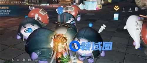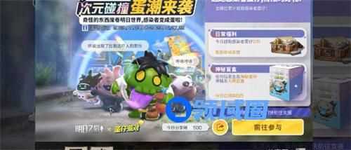 1、点右下角前往参与进入活动地图,玩法很简单,在喷泉附近桌子上有成鱼棍可以领取,打五个蛋仔就可以了;