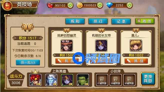 前提条件准备好后就可以备战竞技场了,竞技场一天可以免费打6次,每次有3次刷新对手的机会,挑战的时候,我们尽量选战力低的对手,以保提高胜率,每天要多打竞技场,有必要时需要购买竞技场的次数,每天保持这样,很快就可以挤进竞技场排名了。
