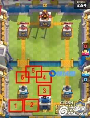 2、很多人会习惯性在国王塔附近下法师,然后对方下雷电法术,很容易亏。