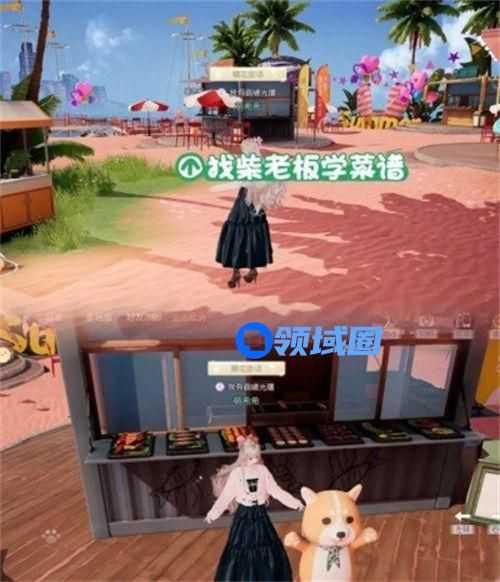 2、进入沙滩广场,在大海的方向,BBQ店铺附近,可以看到“柴老板”,样子是一只柴犬。