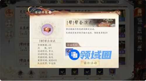 1、帮会里拥有了“演武场”建筑,即可每日前往建筑处参与活动。