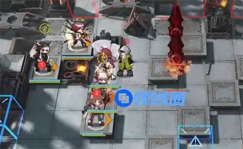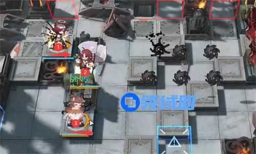 桃金娘继续开技能,然后如图所示位置部署棘刺(向右技能好了就开) → 蜜莓(向上,看平民)→ 银灰(向右)→ 星熊