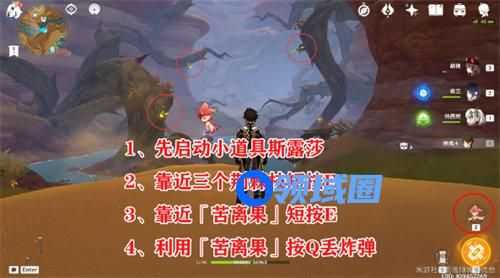 2、这里会有三个,需要玩家用小精灵靠近e,有反应的就是需要清除迷雾的;