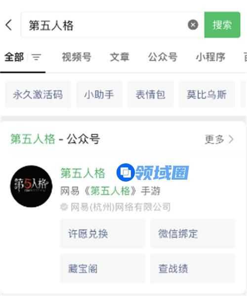 2、玩家复制这个券码,打开微信搜索【第五人格】公众号;