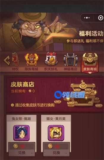 皮肤币可以在皮肤商城换取,黄月英的猫女皮和甄姬的兔女皮。