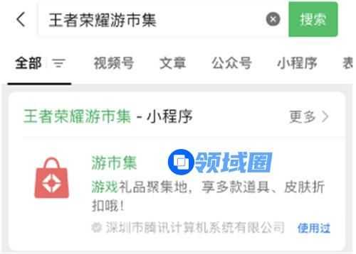 1、打开微信,在上方搜索框中输入【王者荣耀游市集】,就可以看到有相关的小程序;