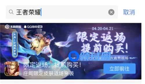 1、进入qq之后,在上方直接就会有庄周筑梦师的返场,如果没有就搜索王者荣耀就会有了;