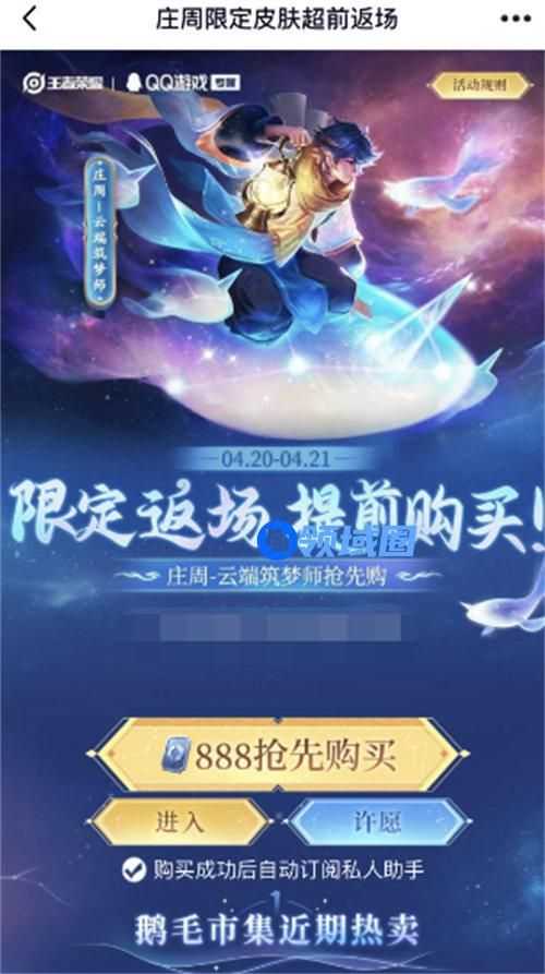以上就是王者荣耀庄周筑梦师返场提前购买方法攻略的全部内容,更多精彩内容攻略请持续关注领域圈,小编将持续更新更多相关攻略。