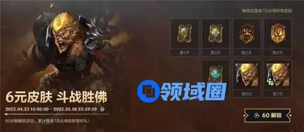 累计登录6天即可解锁斗战胜佛 孙悟空皮肤,累计登录7天即可获得专属姿态“瞭望”!解锁活动后至5月6日23:59内,均可参与领奖。