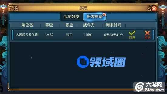 如果您被其他玩家看中了,怎么去接受别人向您发出的好友申请呢?同样在主城左侧点击好友按钮,会弹出好友界面,在好友界面点击上方的好友申请就可以看到所有向您发出的申请了。
