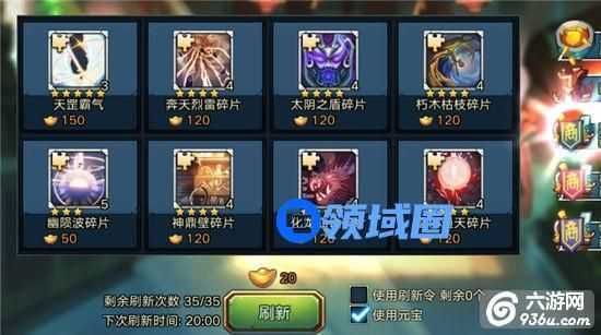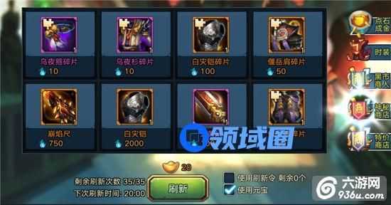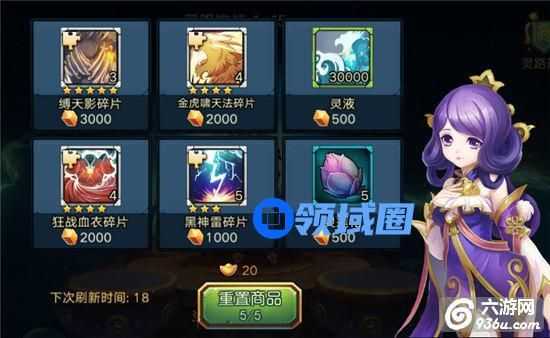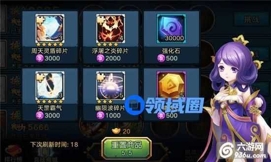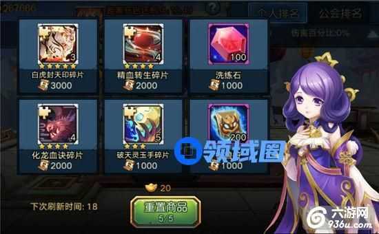 刷新规则:每日18:00重置商品,或者花费20元宝重置商品