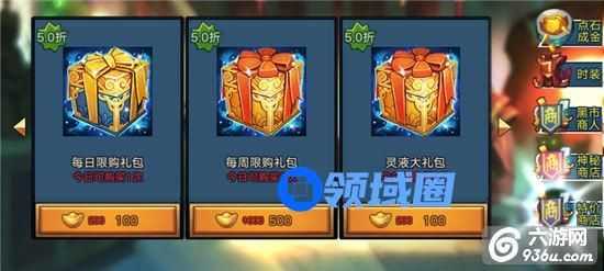 每日限购礼包:50000金币,10000强化石,10000灵液,10个灵莲花