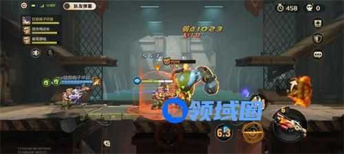 战斗中,只需要一个开护盾顶住(尤其是boss锁定技,必须开!),队友补治疗,跟上二段跳到机甲兵头顶或背后,露出弱点就可以扔雷或发导弹重伤敌人,装填加伤,开子弹时间就能轻松打满伤害。走位看清激光攻击的轨迹,跟着提示线避开。躲大范围群伤类的弹幕攻击时,跳到空中或躲到地图角落,就可以继续输出。