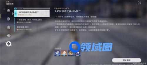 1、在完成「大矿区铁道之夜·续·其一」后,等到现实时间第二天,「大矿区铁道之夜·续·其三」自动刷新在任务列表;