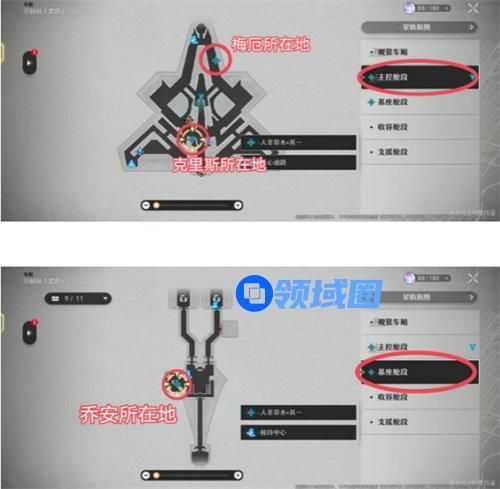 4、根据任务指引,去“观察”位于主控舱段的克里斯和梅厄,与位于基座舱段的乔安。