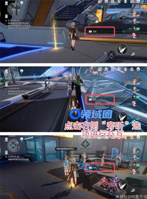 5、具体操作:只需要在目标附近,点击“旁听”选项交互即可