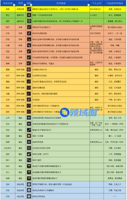特殊效果、通用状态、异常、控制+异常、增益、战法类型