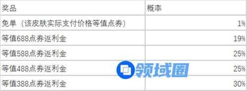 ● 当抽取到免单时,该皮肤对应实际支付价格等值点券将直接发放到购买的账户中。