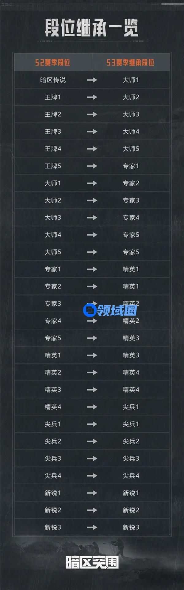 段位将在S2赛季结束后进行重置并继承段位,对应继承规则如下: