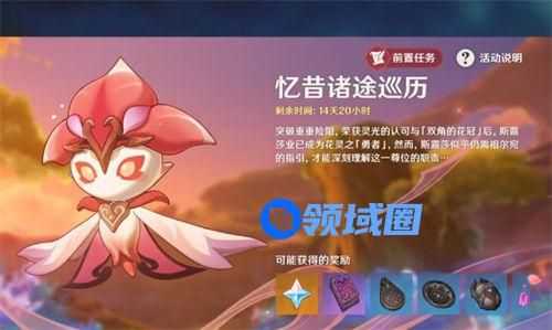 1、想要获得花灵斯露莎,需要完成活动【忆昔诸途巡历】的前置任务【彼时满天异彩】,新花灵斯露莎限定在新地图范围使用,也就是说在其他地区无效哦。