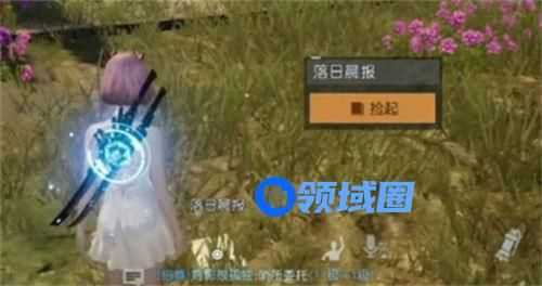 2、当你来到这个位置之后,然后我们把视角往右侧看,可以看到落日晨报,我们过去拾取;