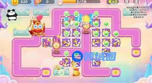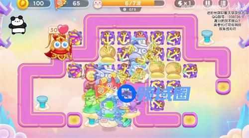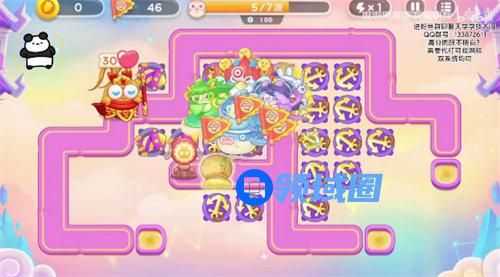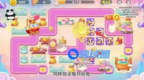 1、开局在右侧的两个空白位置放船锚炮,先把上方起点旁边的道具清掉,还是放船锚炮,粉兔到了右侧的那个路口拐角要锁头打;