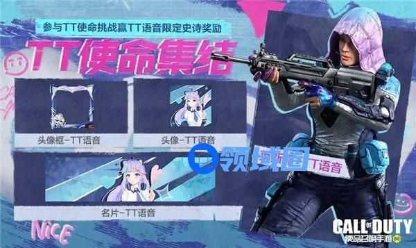 此次,《使命召唤手游》X《TT语音》梦幻联动,为战士们带来了有奖活动,参与活动即可获得精美联动道具,其中包含史诗级角色皮肤:莱斯丽-TT语音和史诗级联动头像框套装。
