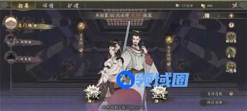 如图侠客头像上方是带有橙色记号的,那么是可以进行招募的,在这个过程中需要答对其问答题共5题,凑满10好感度即可邀请侠客