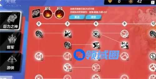 1、核心天赋:每个面板后悔有2个核心天赋,玩家可以从三个天赋中随意选择一个。核心天赋赋予的能力通常涉及特殊机制,例如“伤害无视敌人的抵抗”。